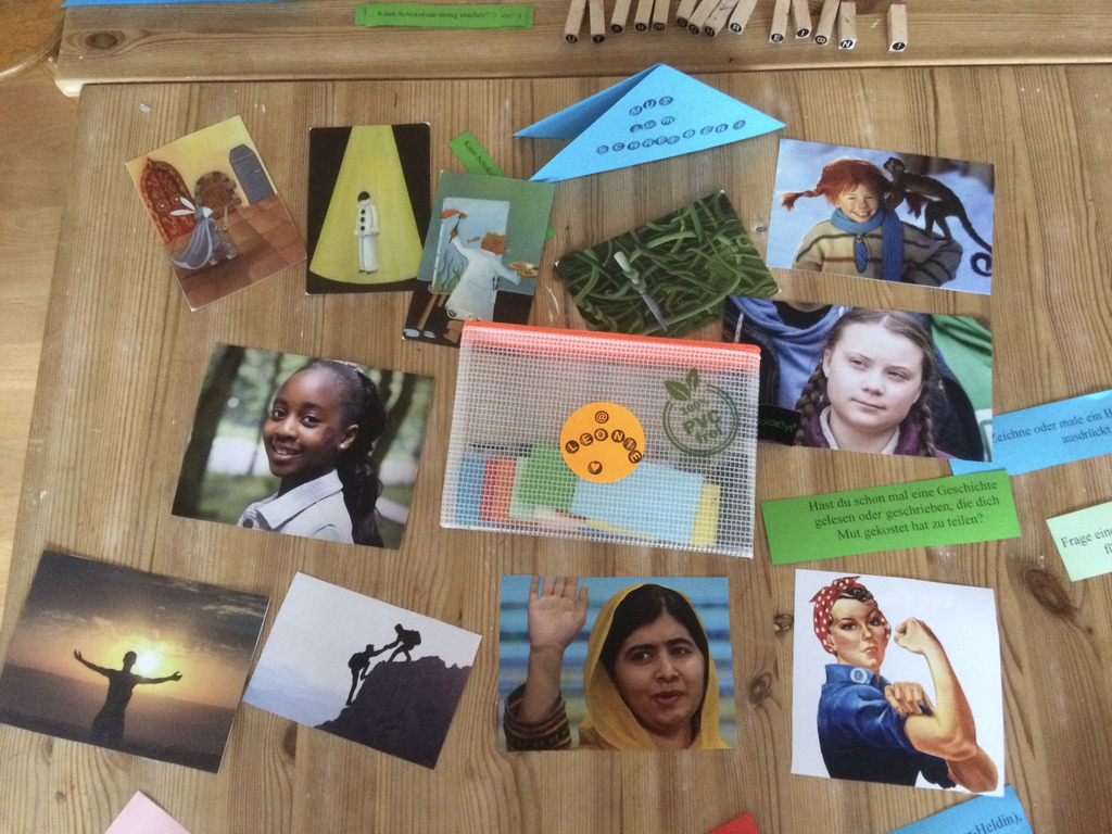 Wähle eins von den Bilder vom Tisch aus und erfinde eine Geschichte dazu.